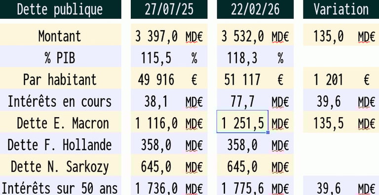 La dette a progressé de 39 milliards € cette semaine.